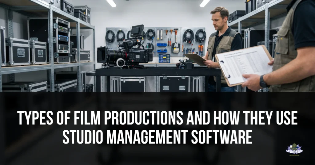Film productions fall into several distinct categories: feature films, documentaries, TV and episodic series, commercials, music videos, corporate videos, short films, and branded content. Each type operates with different crew sizes, timelines, facility needs, and budget structures. What they all share is the need for connected studio management software that handles scheduling, equipment tracking, crew coordination, budgeting, and media asset management in one platform.