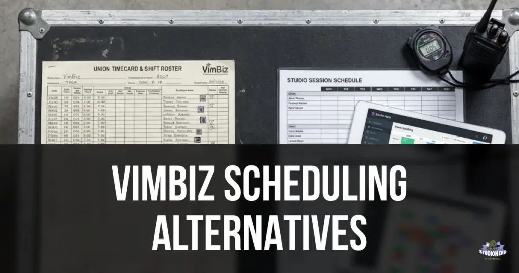 VimBiz can schedule facilities and crew for broadcast productions. However, its workflow is built around broadcast shift scheduling with timecard management and union claim automation. It does not include client-facing booking portals, session-based invoicing, or the workflow patterns that creative studios need. For studio operations, see Studio Hero’s studio scheduling and equipment tracking.